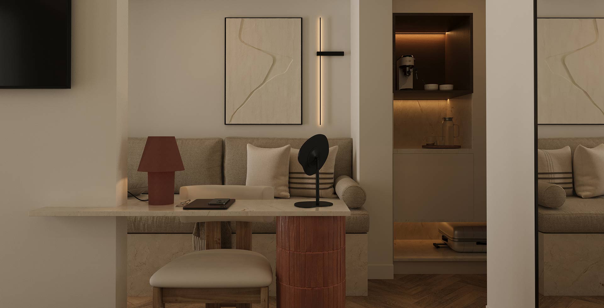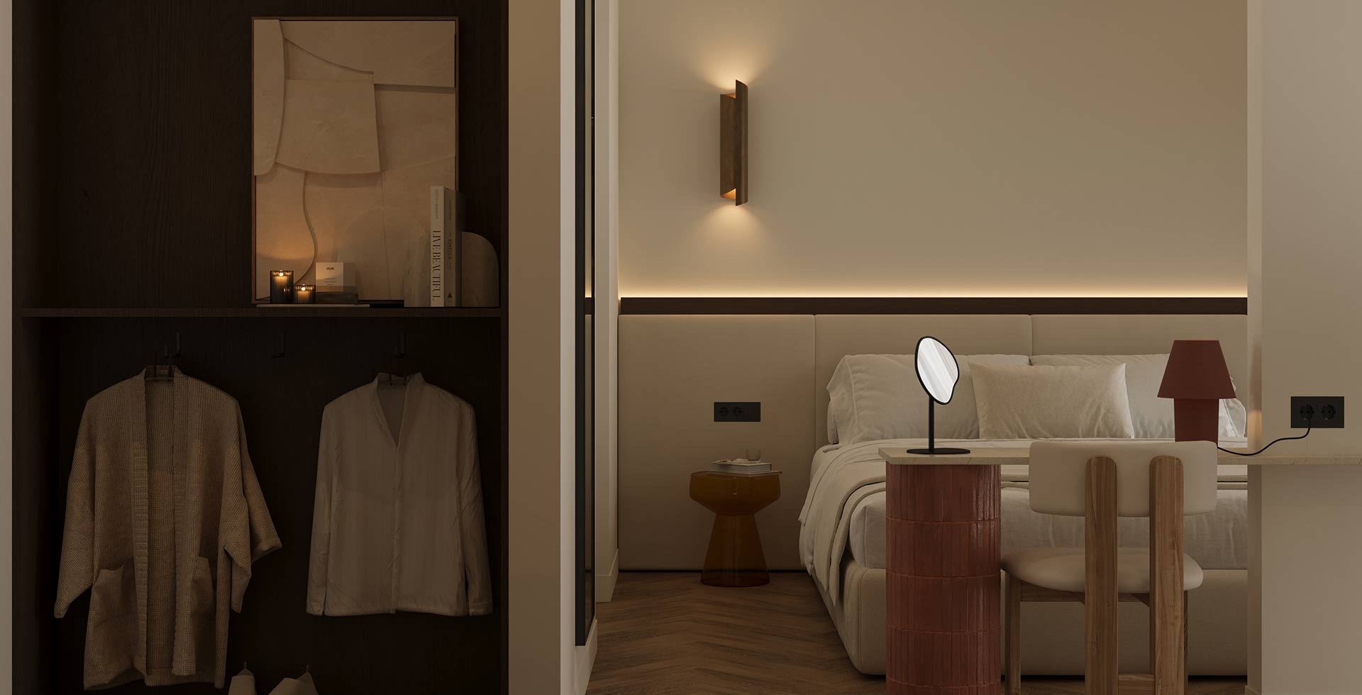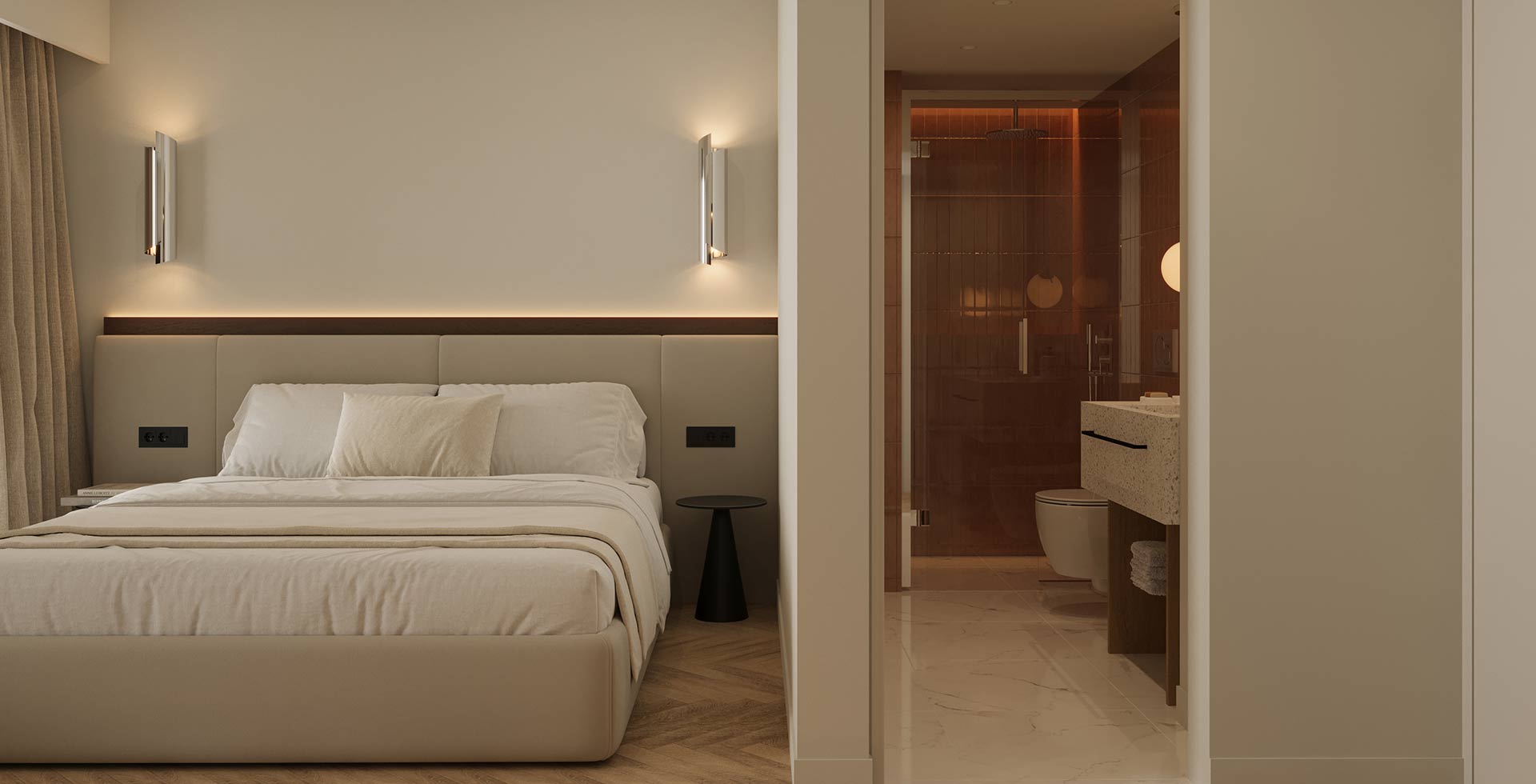 An intimate haven designed for two, where elegant design and sophisticated warmth combine. This unique retreat is a tranquil space for the modern life explorer.
