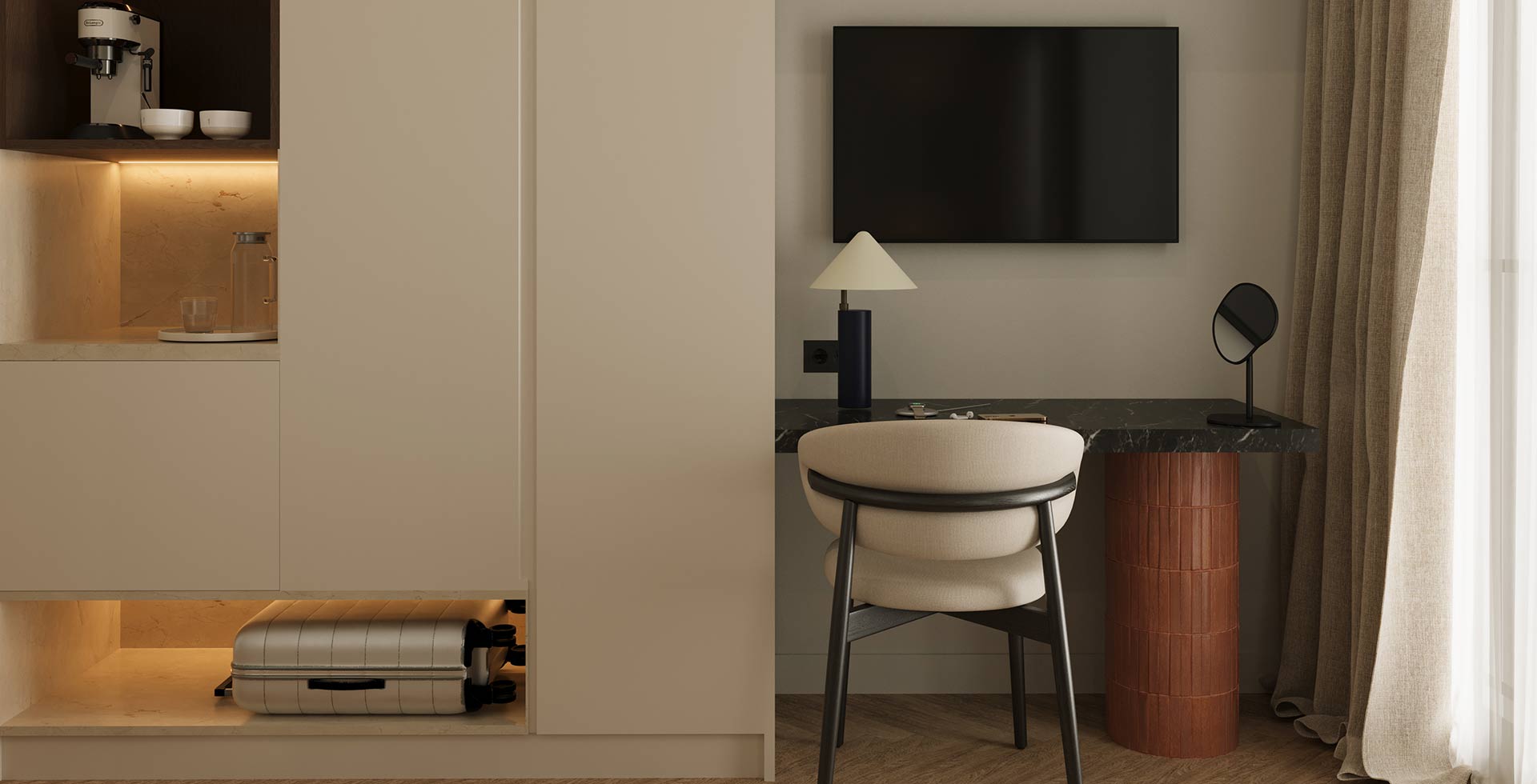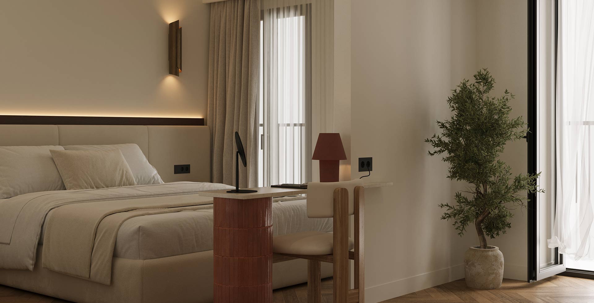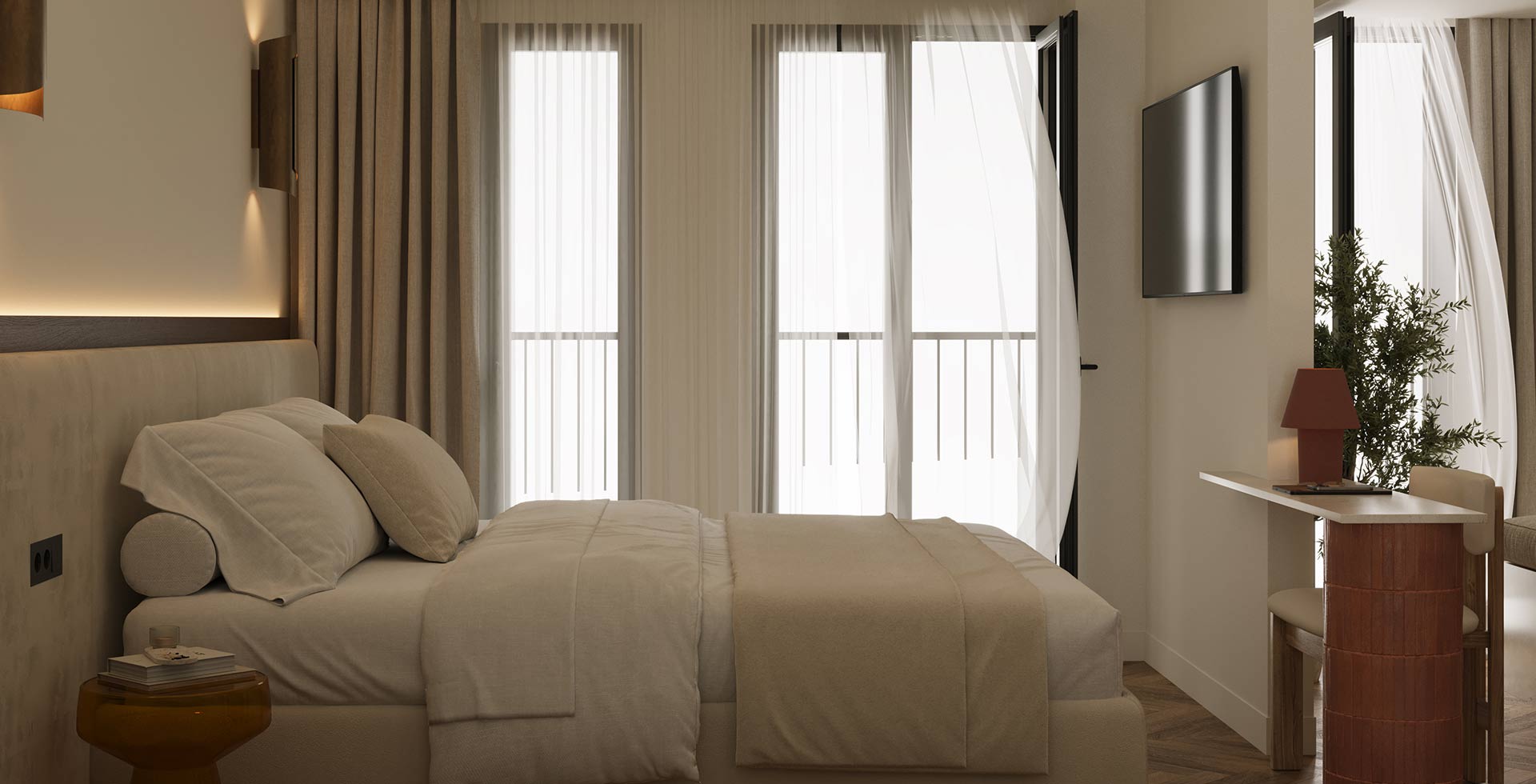 An intimate haven designed for two, where elegant design and sophisticated warmth combine. This unique retreat is a tranquil space for the modern life explorer.